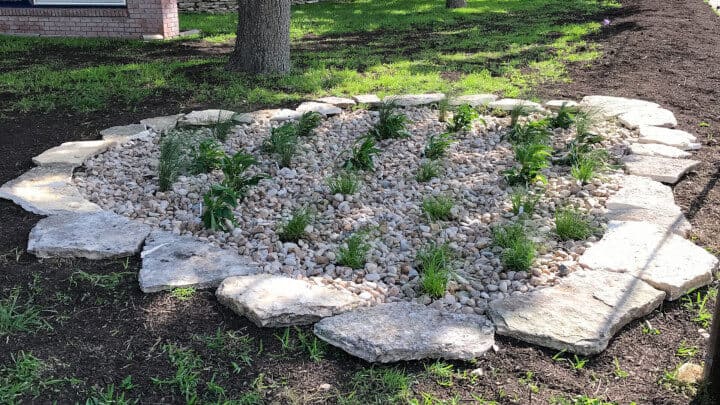 Our approach goes beyond constructing a path. Each 3’x3′ section of the pathway offers a mini sensory adventure, incorporating materials like textured tree cookies, diverse rock and gravel arrangements, and native plants. Crunchy gravel, smooth and shiny stones, fragrant herbs, straight lines, and spirals combine to create a dynamic and interactive experience. These elements spark curiosity and invite hands-on exploration, making the sensory pathway a standout feature of the courtyard.
