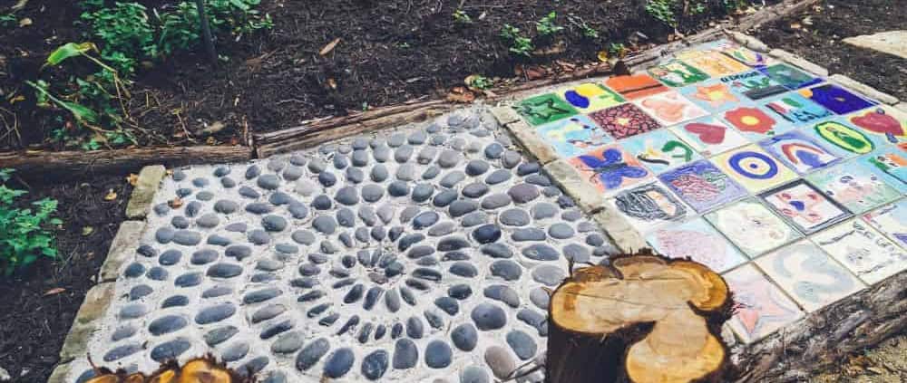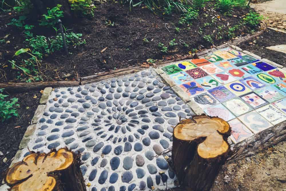 Our approach goes beyond constructing a path. Each 3’x3′ section of the pathway offers a mini sensory adventure, incorporating materials like textured tree cookies, diverse rock and gravel arrangements, and native plants. Crunchy gravel, smooth and shiny stones, fragrant herbs, straight lines, and spirals combine to create a dynamic and interactive experience. These elements spark curiosity and invite hands-on exploration, making the sensory pathway a standout feature of the courtyard.