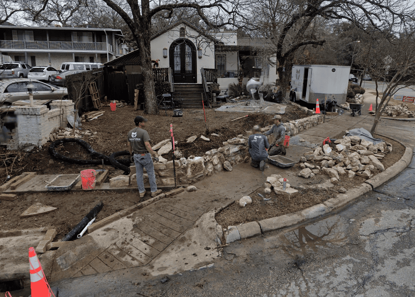 Other underground conditions also influence landscaping prices. Not a day goes by without Maas Verde crew members excavating — and when they have to break through stubborn kaliche or limestone, it adds time.