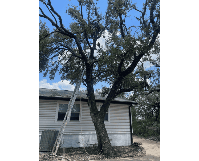 Both Fall and Winter are great times to give your existing trees some love through tree trimming. This time of year, most trees are going dormant by slowing down photosynthesis and relying more upon stored energy obtained during the Spring and Summer months. Trees will also invest more energy towards root growth during this time of year instead of canopy growth. For red oaks (Quercus texana) and live oaks (Quercus virginiana), this time of year is ideal to trim their canopies, because oak wilt (Ceratocystis fagacearum), a parasitic fungus, is not active during colder months. We are not allowed by most cities to trim live oaks and red oaks during February 1st – June 30th timeframe, because that is when oak wilt is likely to be active. Considering climate change over time, this timeframe could change oak wilt’s active months.